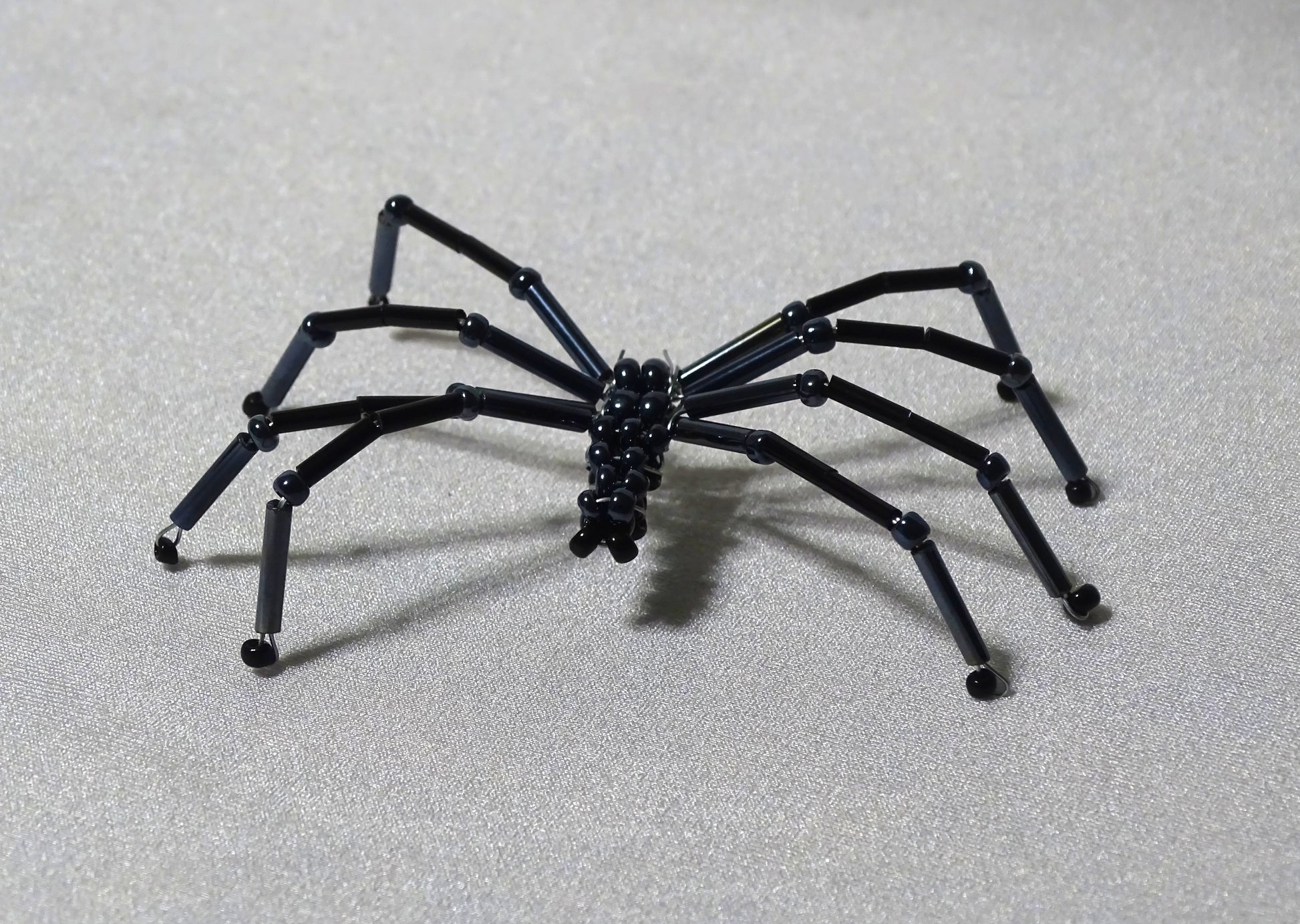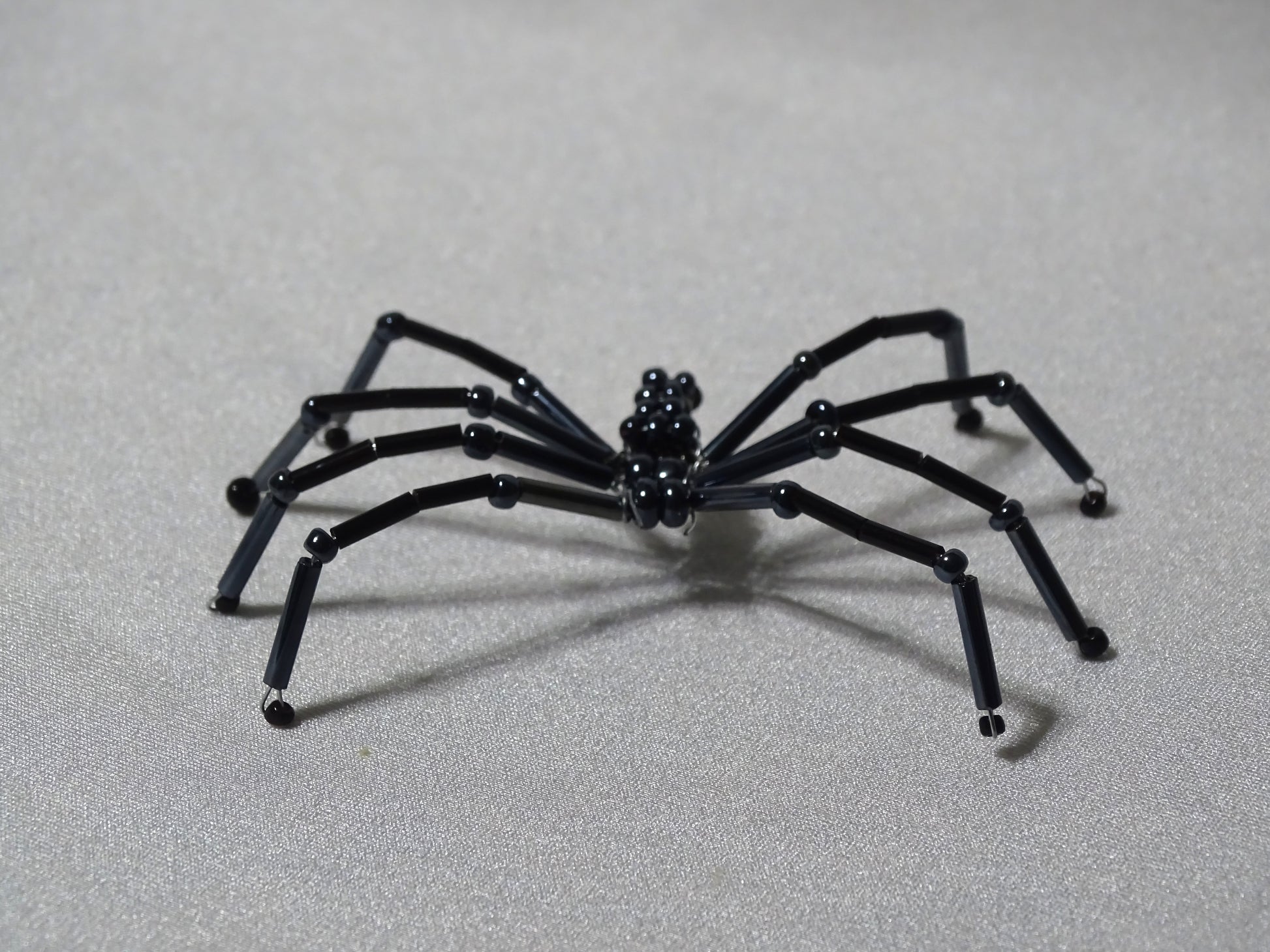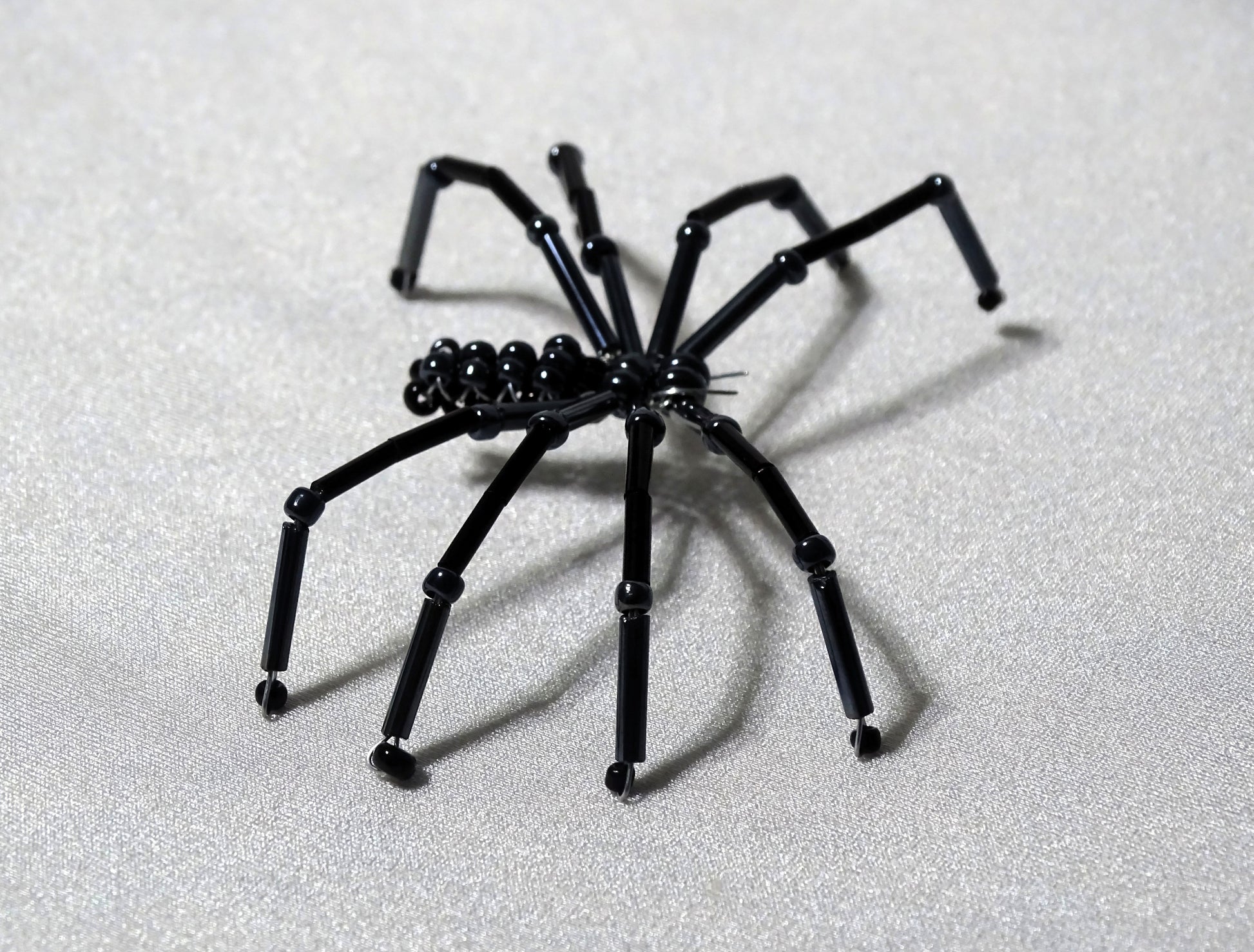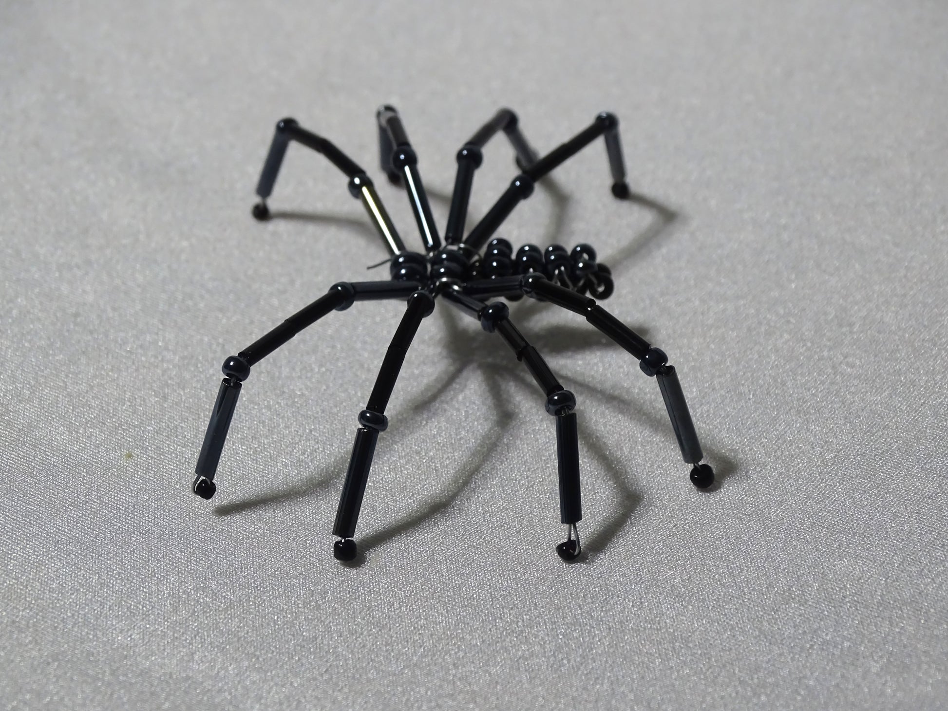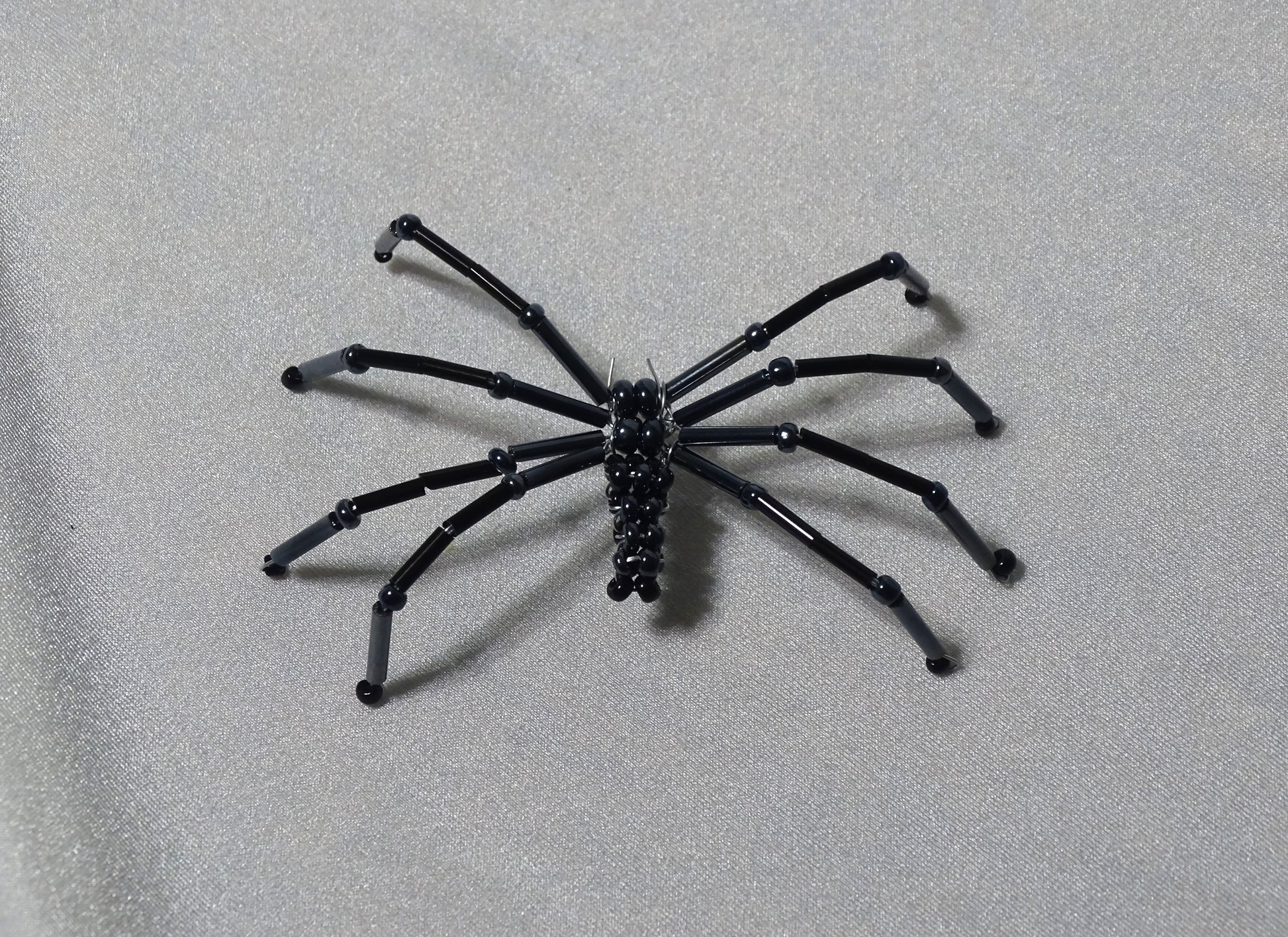 The body of this one is inspired by exotic species not native to the US. It is made entirely of hematite or gunmetal finish glass beads and is truly one of a kind. In the right light, the blue-grey looks just like the stone it is titled after. Measures approximately 2 ½ inches wide depending on how it is posed, however, pose with caution as too much bending could break the wire inside.