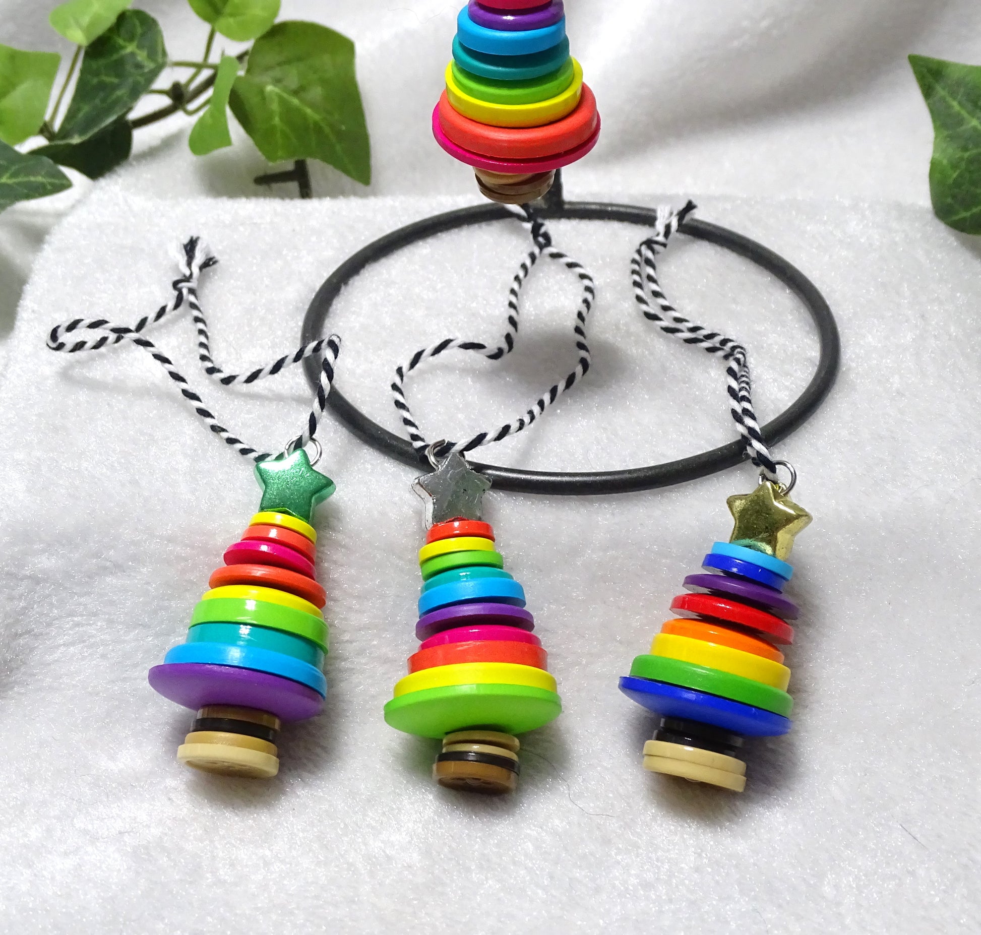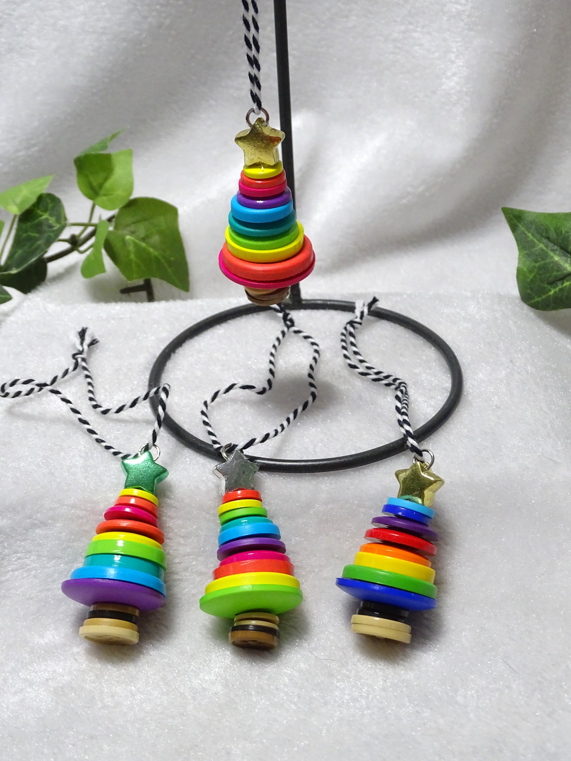 Rainbow Multi-color Button Tree Ornaments